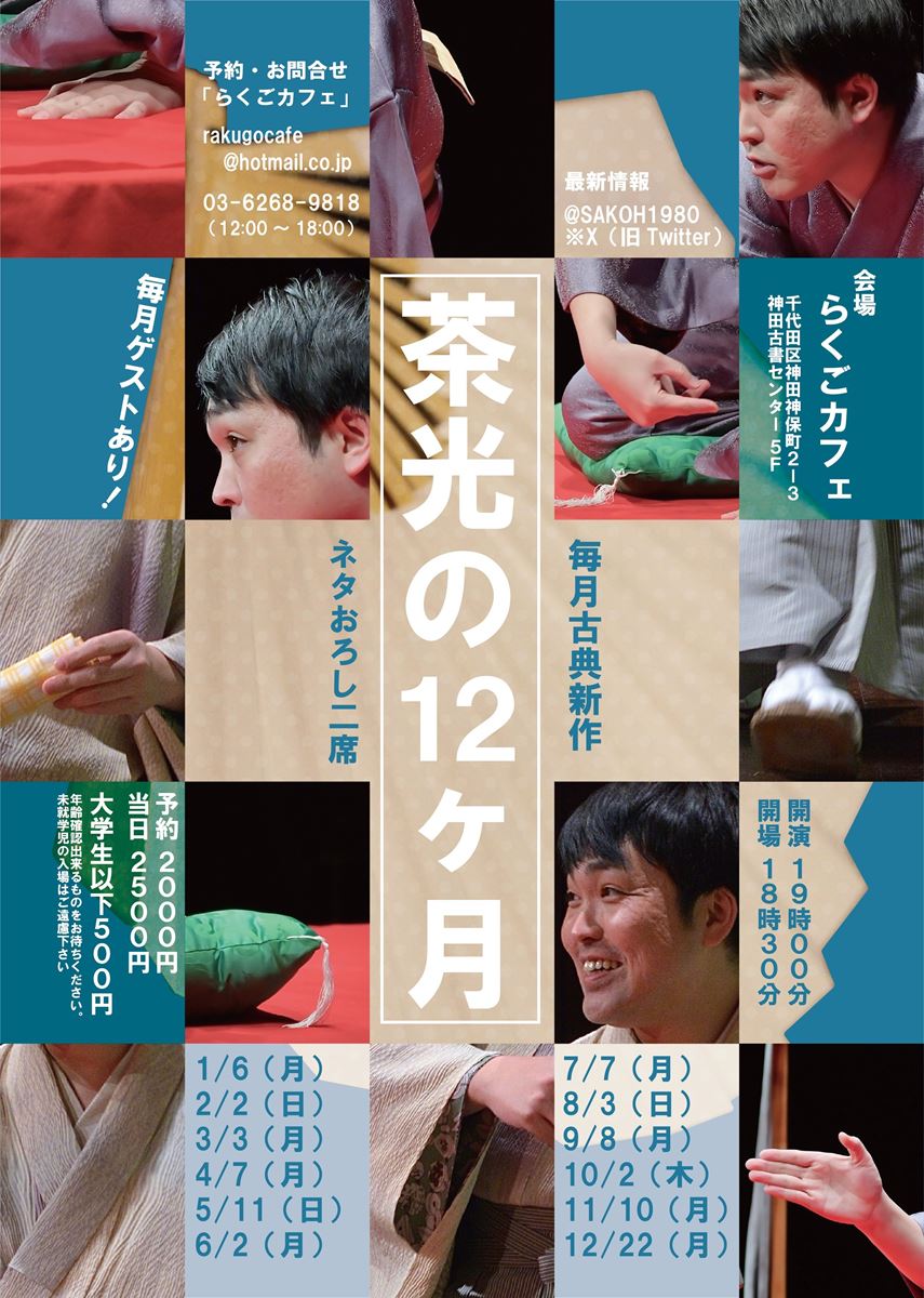 古典では地の語り以外は現代語を入れず世界観を壊さないように腐心し、新作に於いては自身のセンスを自由に織り込むといった緻密さと笑いの取り方の差違を熟知している。「初めて落語を聴くお客さまの入り口になりたい」と言うが入り口どころか落語界のメインストリートのひとりになれる存在である。笑福亭茶光さん、いよいよブレイク間近。