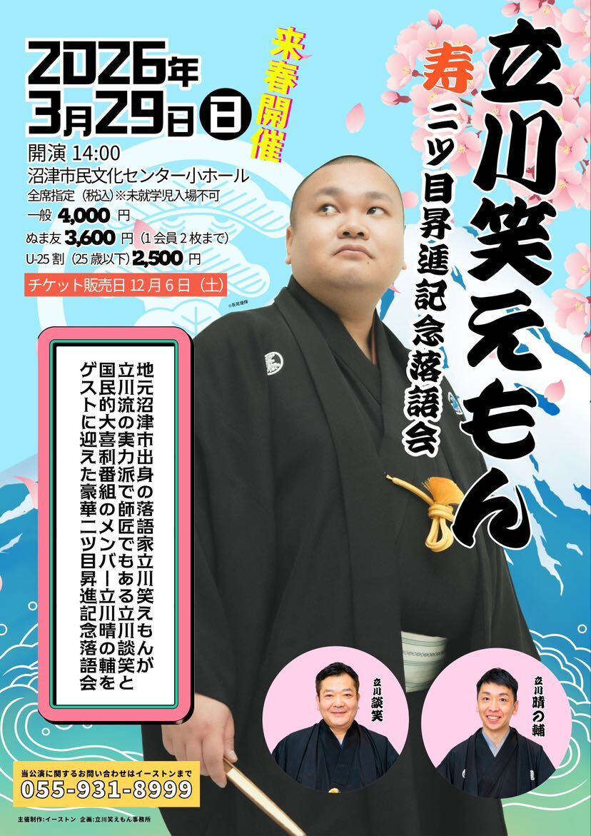 「立川談笑一門会」ごひいき願います!