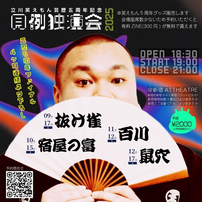 ■芸歴5周年記念立川笑えもん月例独演会