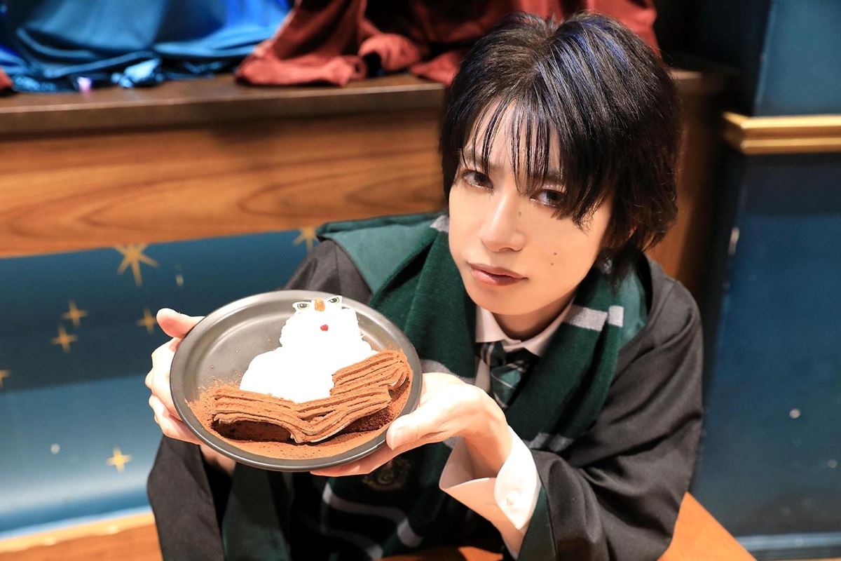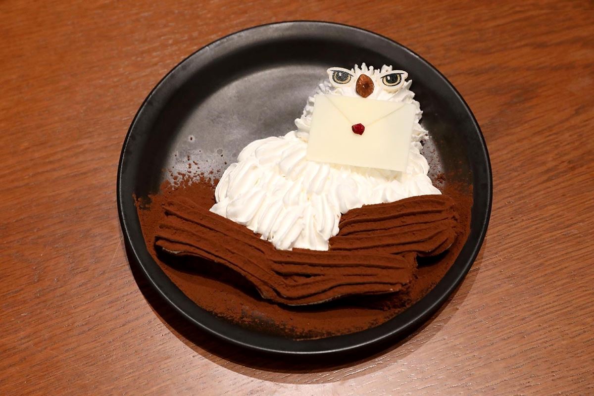 そして、「音楽甘党遊戯」ですからもちろんスイーツも。いただくのは「ヘドウィグ ミニケーキ」です。ハリーの相棒であるフクロウのヘドウィグをイメージした一皿となっています。