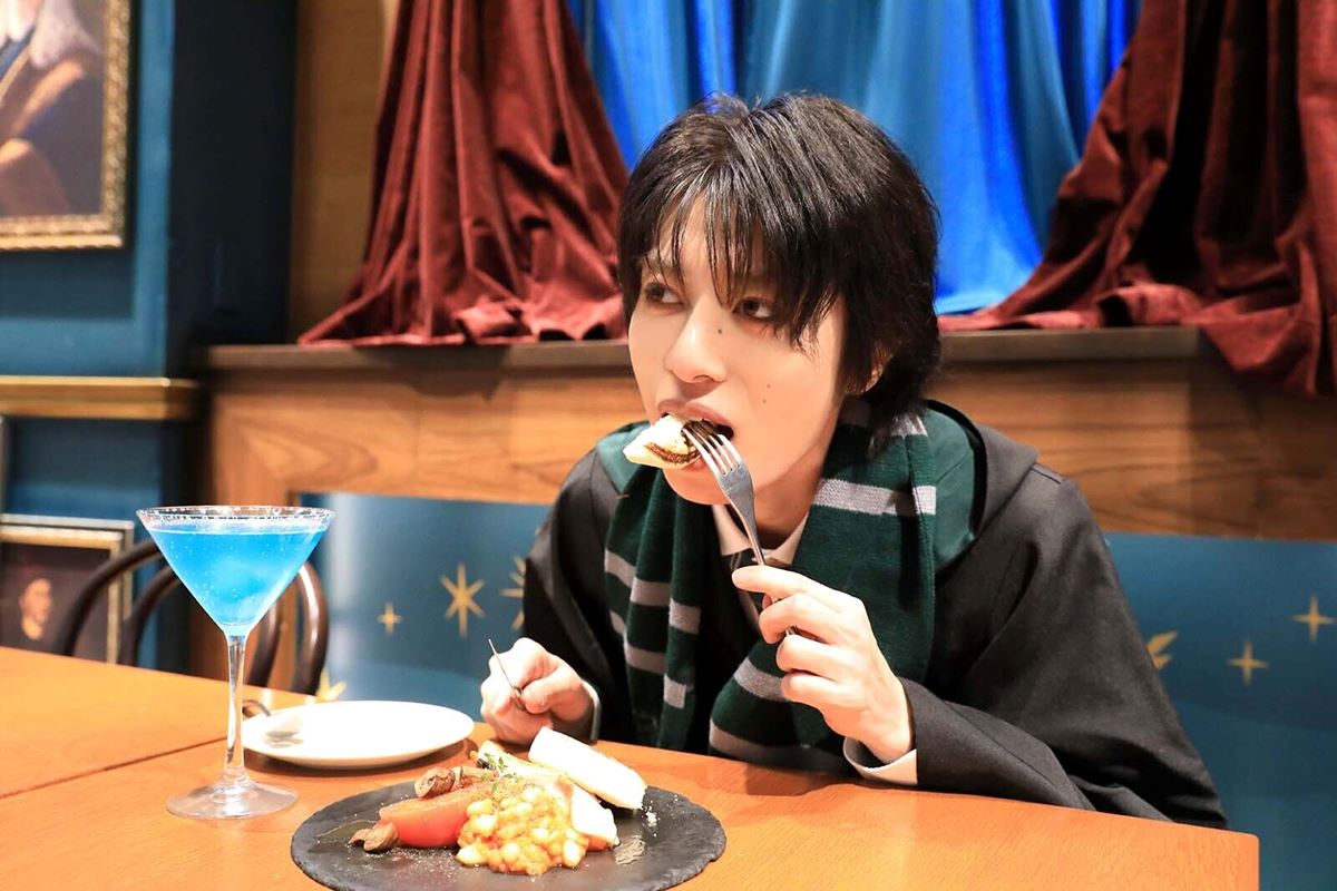 SHINさんもスリザリン生になりきっての撮影です。思わず「これはテンションが上がる!」の言葉も。