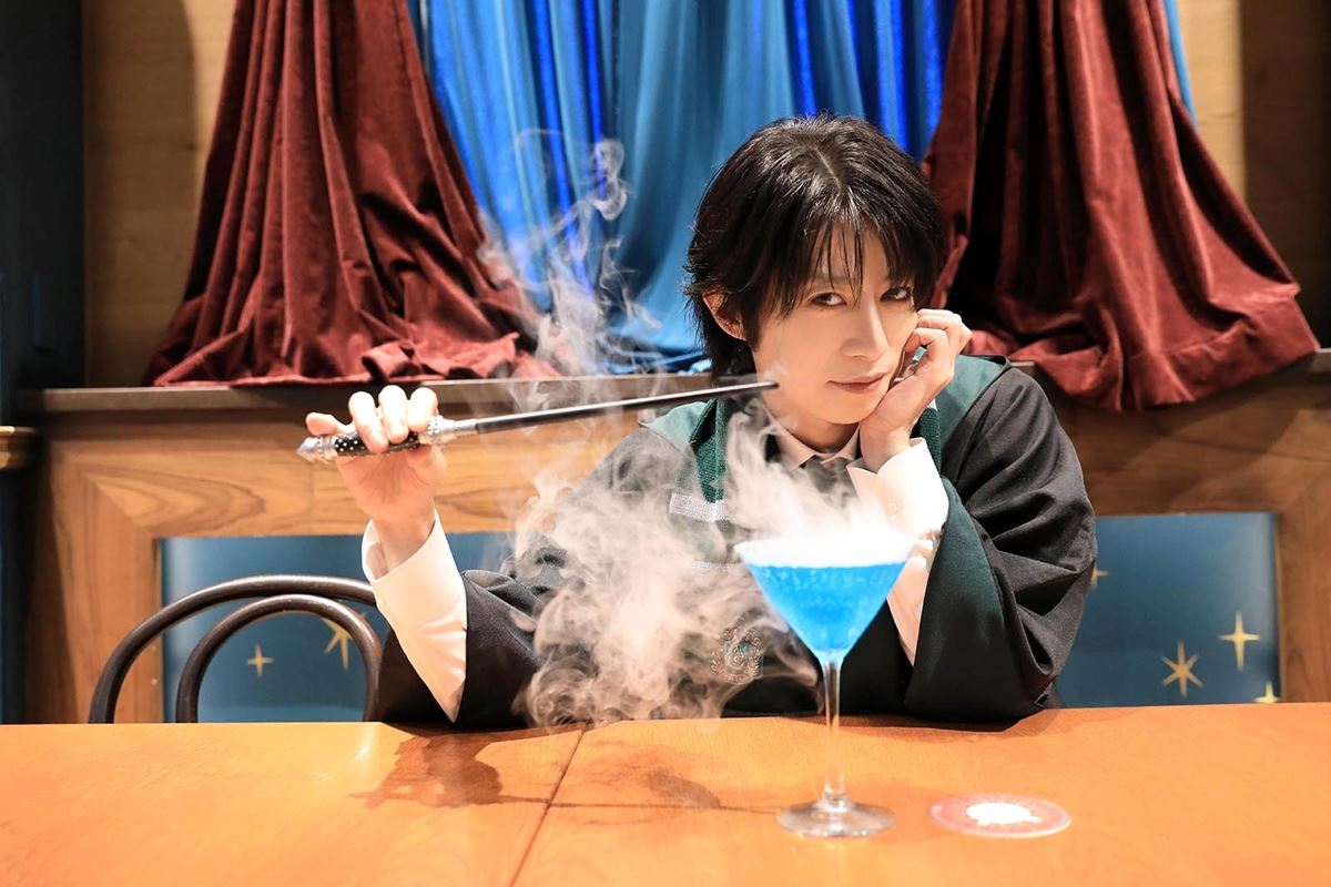 そんな店内でまず登場したのはドリンク「エクスペクト・パトローナム」。ドリンクの名前の通り、呪文をイメージしたカラーのノンアルコールカクテルです。これに呪文を唱え、魔法をかけると?