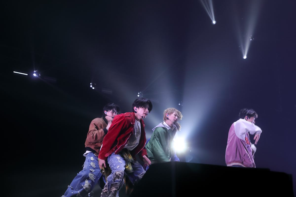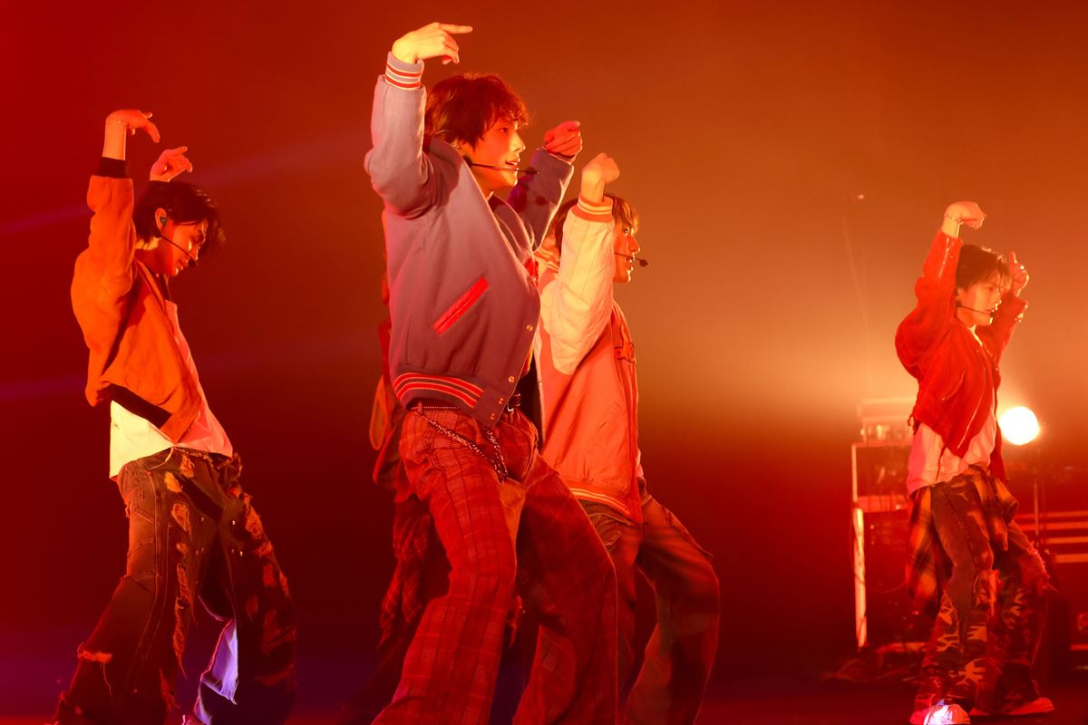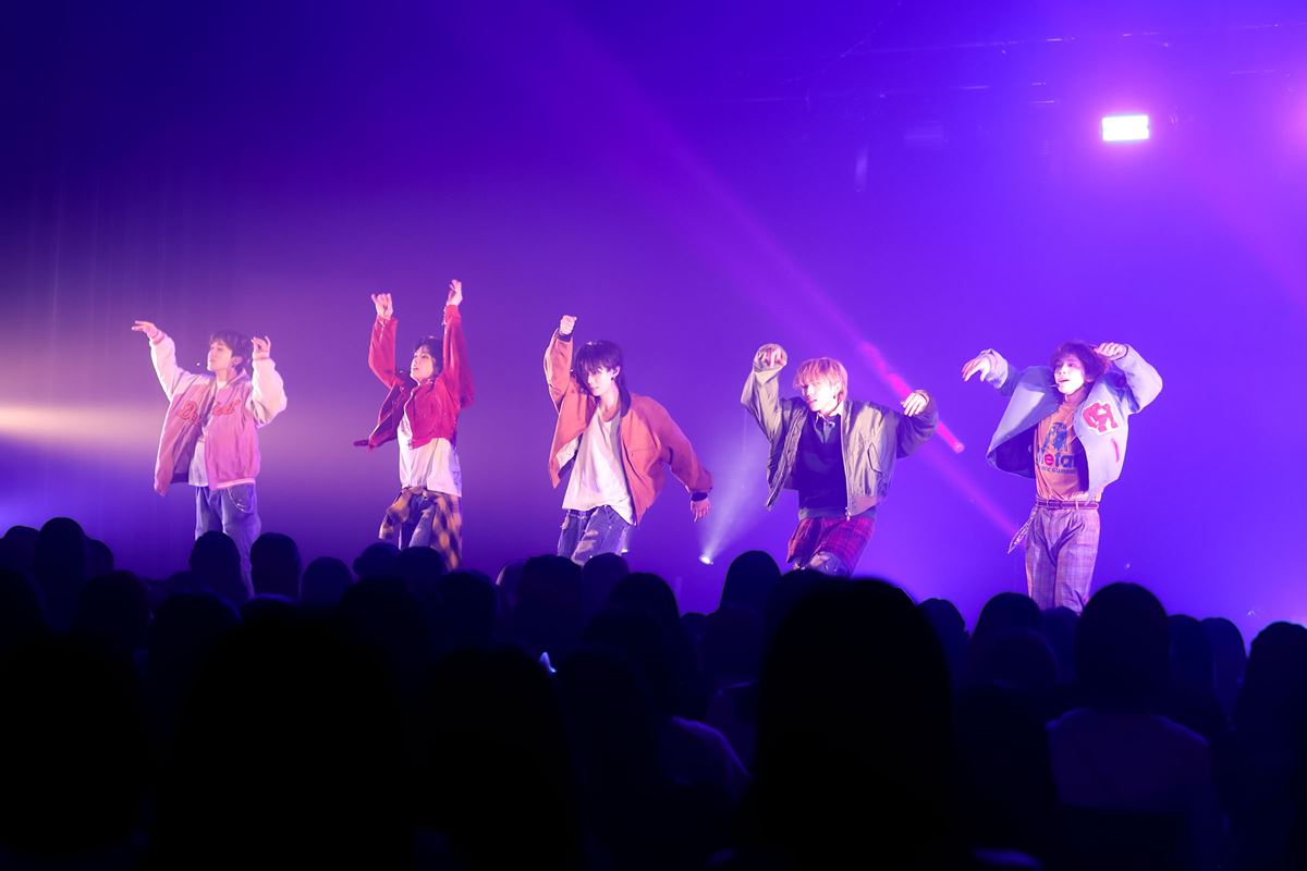 「まだまだいきますよー」という山下幸輝の煽りで続く2曲目は『Bubbles』。ダンスで攻める楽曲が多い中、この曲はフリータイムが多く、メンバーそれぞれの個性が見えるのも楽しみどころ。とにかくSTARRYといっぱいコミュニケーションをとろうとしてれくれるファンサの神な宮武颯。まるで跳ねるように高く後ろ足を上げてステージを横断する幸輝は、自分の可愛さをわかっているのか無自覚なのか、絶妙に読みきれないところが罪づくり。情報量が多すぎて、「目が足りない」という悲鳴をこらえてSTARRYが声援を送る。