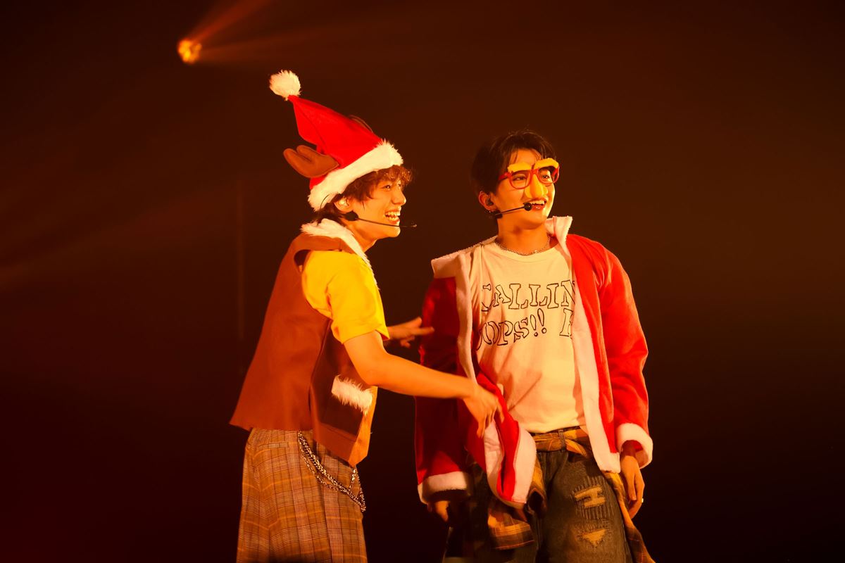3人の好演に火をつけられたのが、幸輝と颯だ。弟たちからバトンを受け取り、2人がカバーしたのはORANGE RANGEの『イケナイ太陽』。平成ブームの担い手となった同曲を、平成らしくパラパラを模したダンスで盛り上げる。相手の拳をマイクに見立てて歌ったり、お互いを指差す振りが随所に盛り込まれていたり、ツインズ感のあるダンスにテンションぶち上がり。中盤には、上着を着ようとして、間違えてサンタの格好になるというコント仕立ての演出も挟まれ、STARRYを楽しませた。