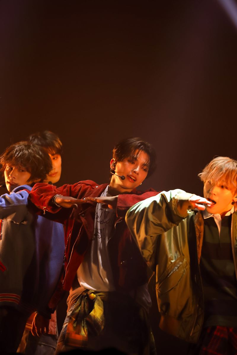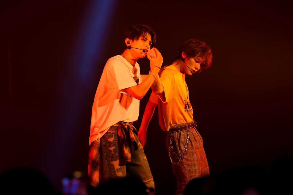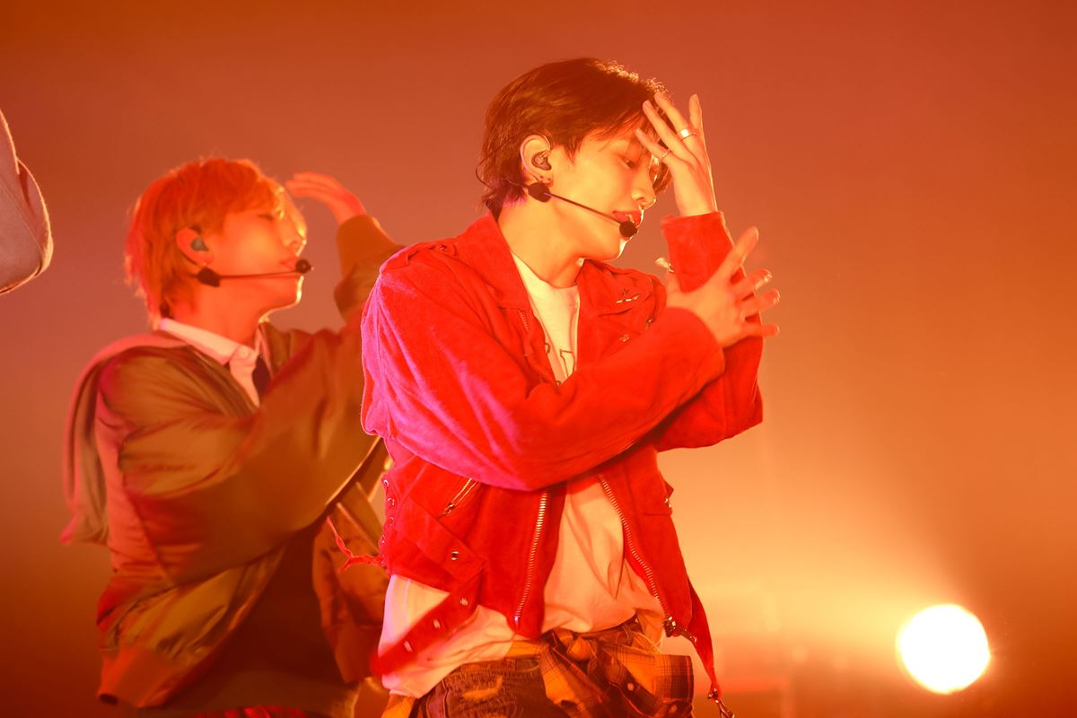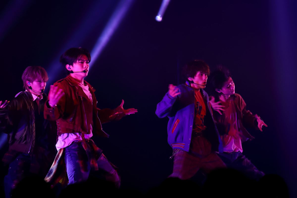 場が温まったところで、『WILD BLUE』『First Light』と名刺代わりの2曲を披露。『First Light』のラスサビでは直弥が高音部分をしっかりハモって、歌声に厚みと透明感がくわわる。ダンスだけでなく、歌でも勝負するWILD BLUEを強く印象づけた。