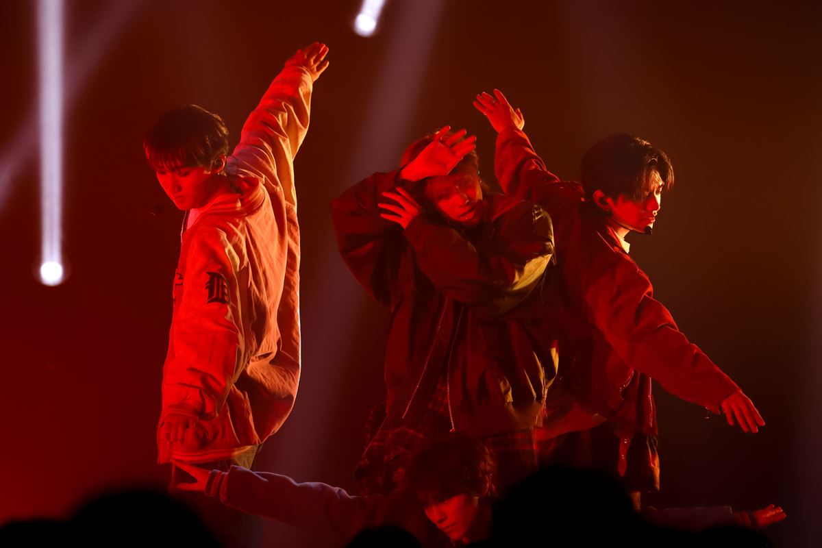 さらに、颯曰く「地獄の2曲」という『Astrist』『Love is Blind』が続く。WILD BLUEのダンスの魅力の一つが、圧倒的な運動量だろう。一拍たりも休むことなく音に振りを当て続け、細かいヒットの数々が動きにうねりを生む。多彩に入れ替わるフォーメーションも視覚的にインパクトがあり、5人の動きが有機的につながっていくことで、5人で一体のムーブメントを描き出す。