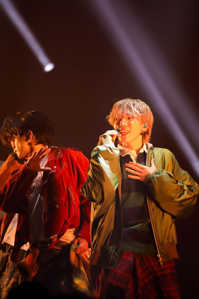 『POP』『Oh Girl』と立て続けに決めたところで、最初のMCに。定番の自己紹介で、颯が「WILD BLUEのバブ担当 宮武颯です」と名乗りをあげると、STARRYが「よしよし」とレスポンス。「金輪際やりません」と恥ずかしがりつつ、「一番緊張してたところが終わりました」と胸を撫で下ろす颯は、どこかうれしそうだ。