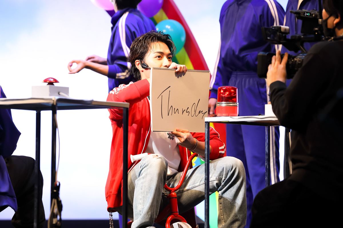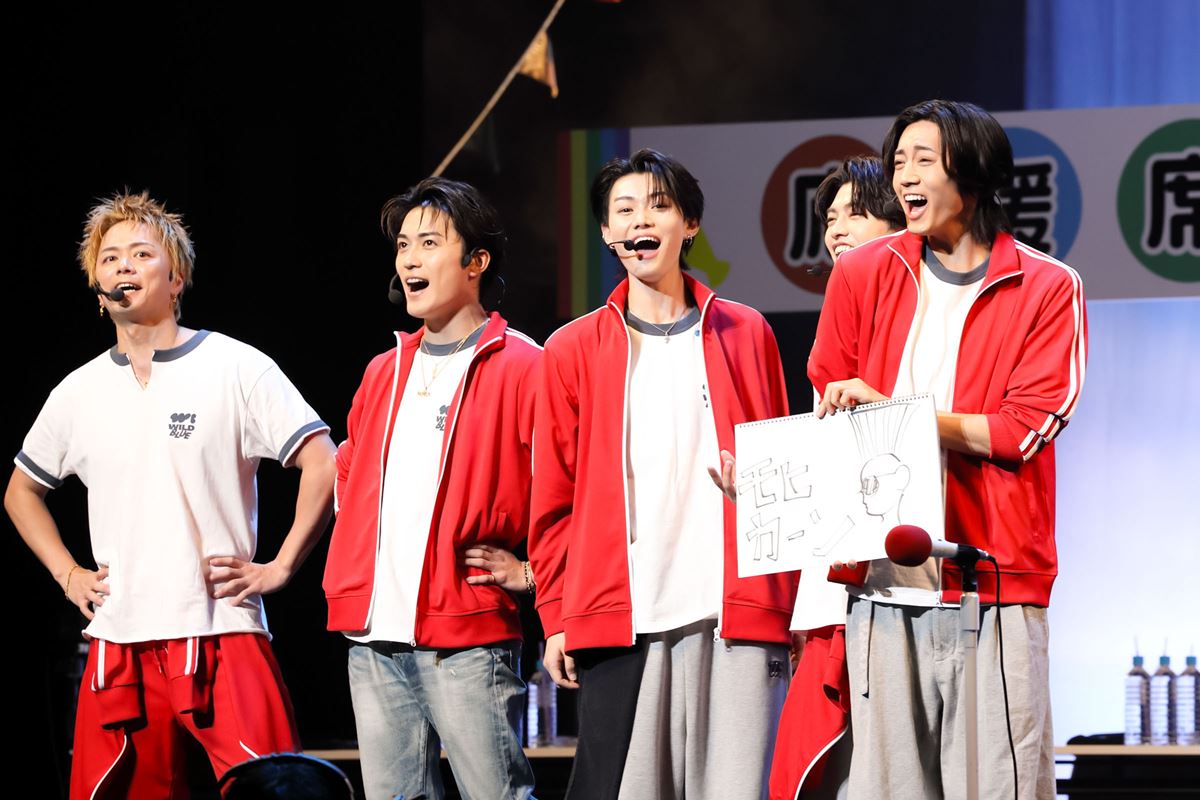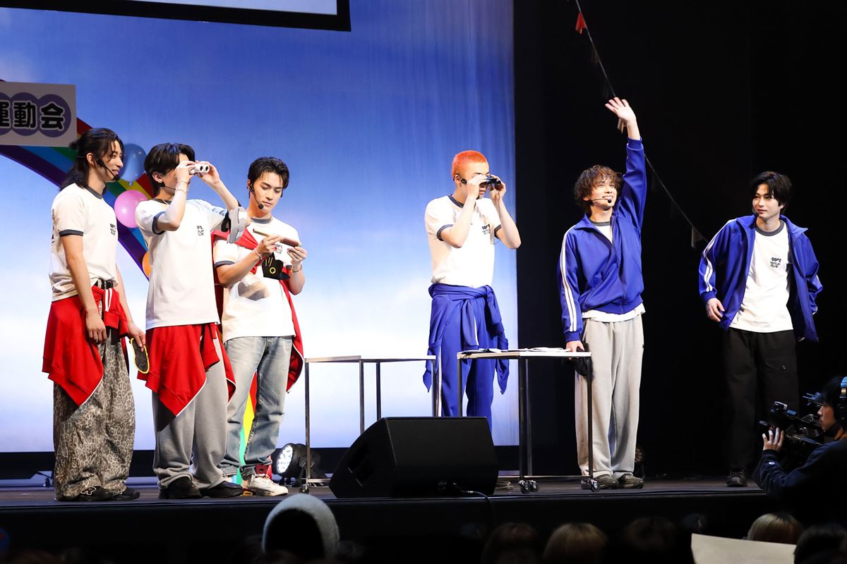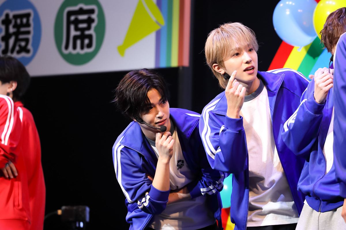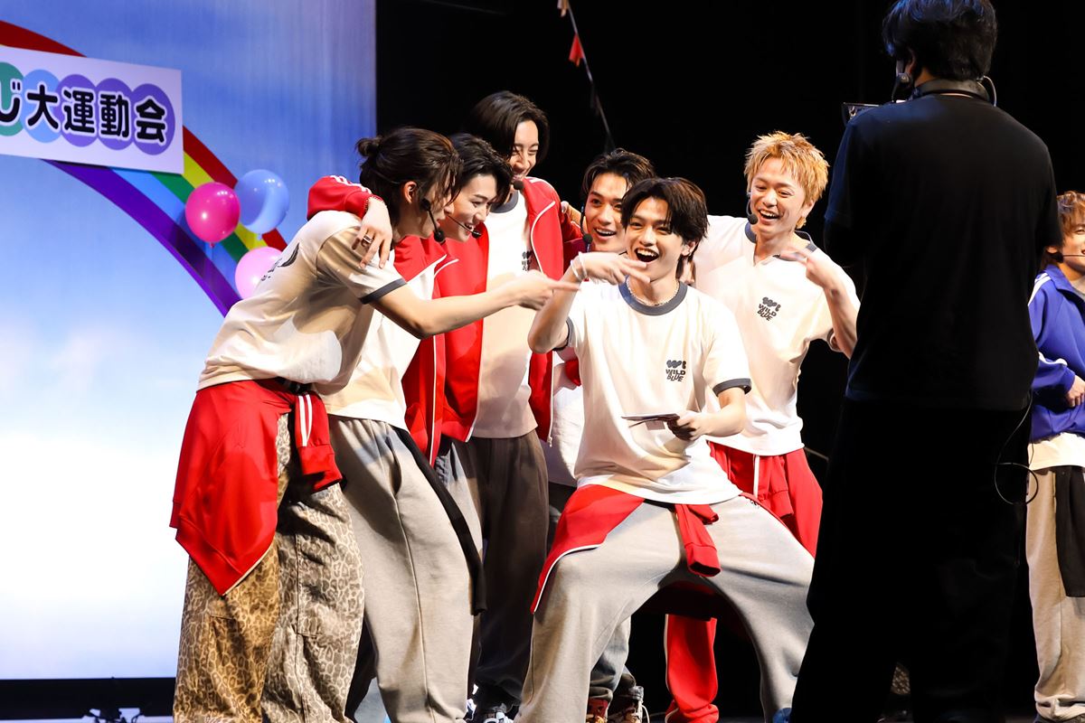 今回のゲストは、7ORDER、BALLISTIK BOYZ、WATWINGと、ボーイズグループ戦国時代を共に競うライバルたち。でも、こんななごやかな光景を見ていると、むしろみんなで一緒にシーンを盛り上げる仲間といったほうが近い気がします。まるでSTARRYのようにキラキラと目を輝かせる仲間たちの声援に支えられ、わぶの5人もいつも以上に楽しそうな表情に。普段のライブとはまたちょっと違うパフォーマンスも、大運動会ならではの醍醐味です。