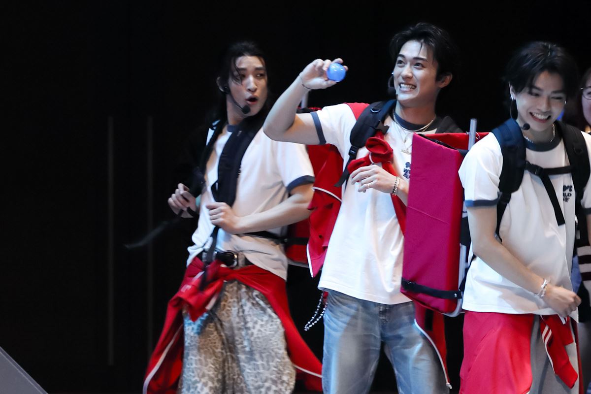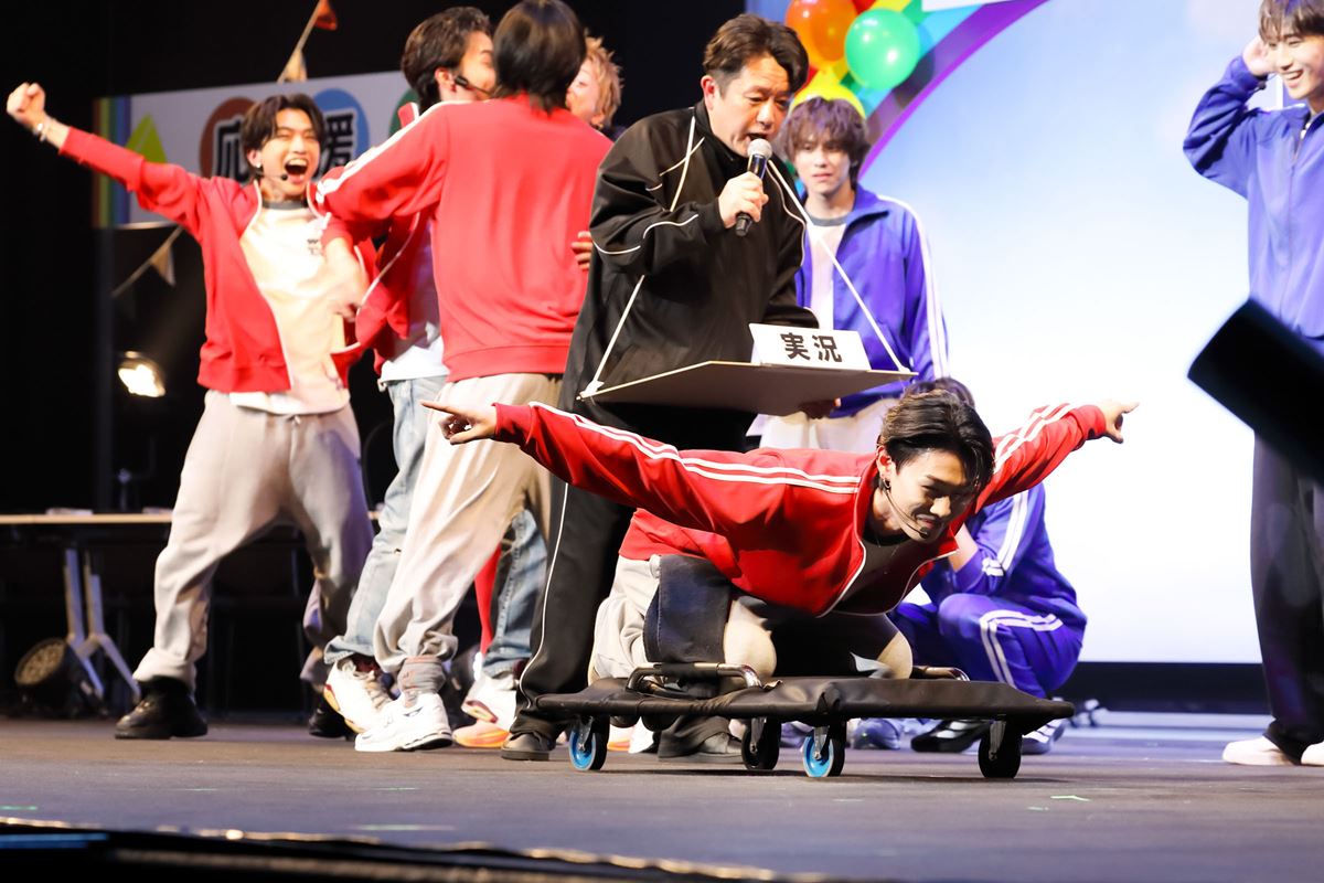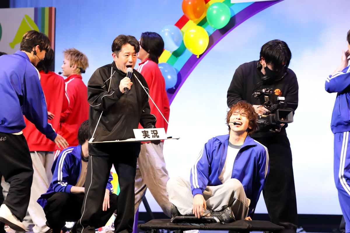 松本怜生くんは「サヨナラホームラン打ったるけえのう!」と元野球部らしくホームラン宣言を決め、BALLISTIK BOYZ の日髙竜太くんは「しゃ〜〜〜〜〜」とボーカルらしい美麗ビブラードを披露。そして、曽田陵介くんはあざとく投げキッスを連発し、会場のハートをキャッチ。多士済々の顔ぶれに、種目が始まる前から熱戦への期待が高まります。