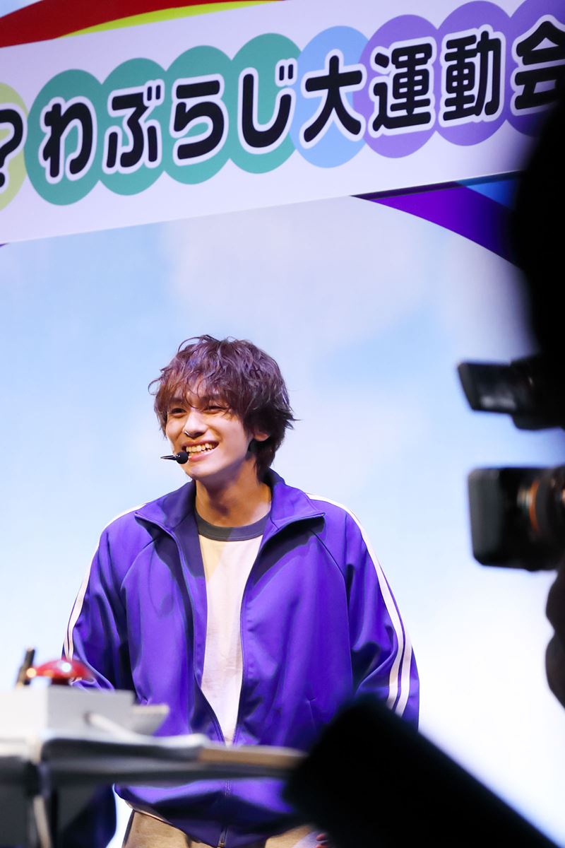 運動会に欠かせないものといえば、準備体操。今回はこの運動会のためのオリジナル体操「わぶらじ体操」を行います。まずは見本としてわぶの5人による動画が流されるのですが、ひとり様子のおかしい人が……と思ったら、幸輝くん。奇妙な動きとクセの強い顔芸を随所に挟み込み、こういうところでボケずにはいられない大阪人の血に、出演者のみんなも「幸輝、ふざけてるやん」「遊んでるな」といじり倒します。