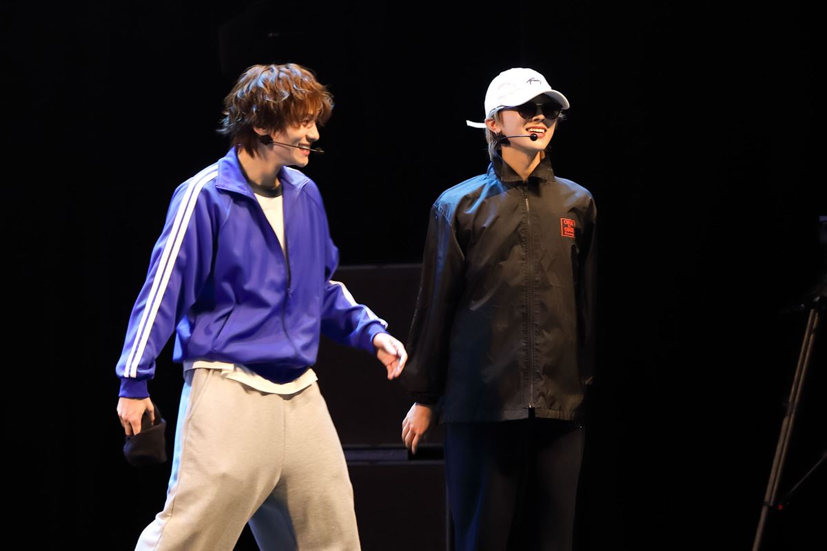 「ずっと前から好きでした。僕と付き合ってください」と正統派で攻める優斗くん。曽田くんは「可愛い子、見〜つけた」から本人はさらに続けようとしたところで、キラキラ〜ンとフィニッシュを飾るSEが鳴り、まさかのボケ殺し(笑)。照れくさそうにしながらも、めげずに「あ、ごめん、待った? あれ、今日かわいいね。君のハートに電流走る」とリトライし、会場を沸かせます。