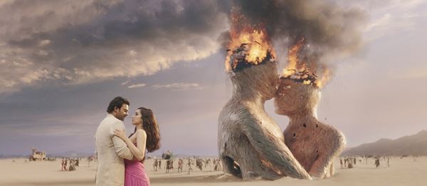 公開された独占映像は、本作の大きな見どころのひとつである、前代未聞の崖ダイブシーンが収められているもの。『バーフバリ』において、シヴドゥの時は崖を登ってアヴァンティカに出会い、バーフバリの時は追い詰められた犯人を助けるためにロープ1本でダイブしたプラバースだが、今回は何もつけずに崖からダイブ。空中でパラシュートをつかみ取るという荒業をやってのけている。