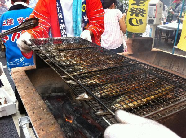 古典落語『目黒のさんま』にちなみ、岩手県の宮古市から直送された旬のサンマ約7000匹が、目黒駅前にて無料でふるまわれる。