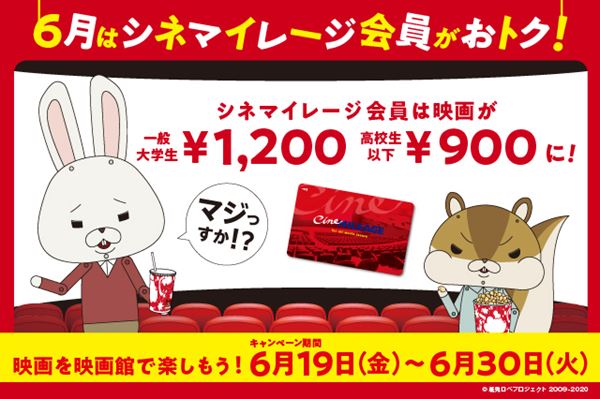 TOHOシネマズがシネマイレージ会員限定で、6月中の特別料金キャンペーンを実施することを発表した。