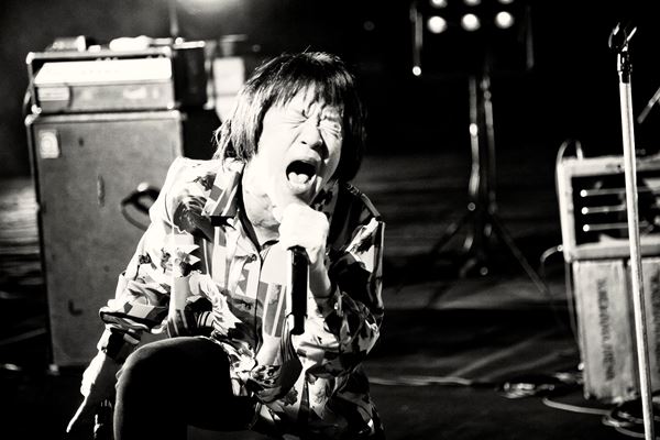 『脳内百景』を経ての3曲目で、フラカンの中でもっとも知られている名曲『深夜高速』が、早くも演奏される。「生きててよかった そんな夜を探してる/そんな夜はどこだ」というサビのリフレインで、客席フロアと同じ高さのステージが、白と青のライトに包まれる。