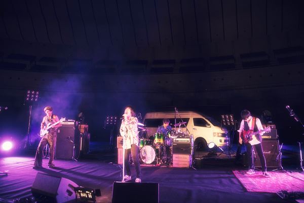 続いて演奏されたのは、『深夜高速』の13年後(2017年)に、再びツアー生活を歌にした『ハイエース』。実物のハイエースの前でこの曲を演奏する、という、初めての、そしてきっと今後もないであろう光景だ。途中でカメラは、4人の後ろ姿をハイエースの中から捕える映像に切り替わった。