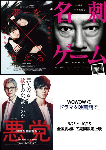WOWOWの連続ドラマW『名刺ゲーム』が、10月2日〜8日の1週間限定で全国の劇場にて上映されることが分かった。『夢を与える』『悪党』と連なっての上映となる。