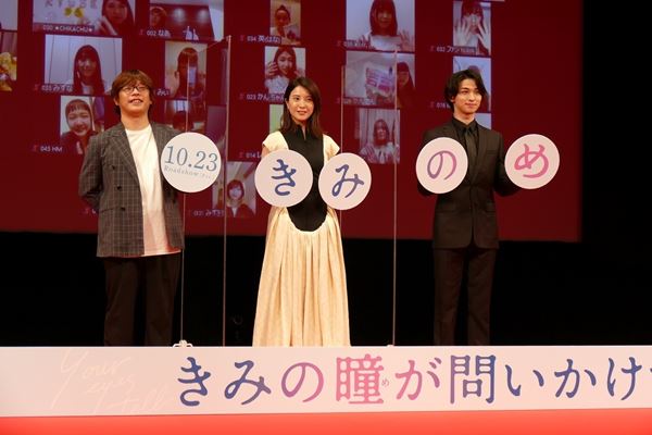 苦難を抱える男女の切ない恋愛模様を描く映画『きみの瞳(め)が問いかけている』の完成報告イベントが9月15日、都内で行われ、ダブル主演を務める吉高由里子と横浜流星、メガホンをとった三木孝浩監督が出席した。
