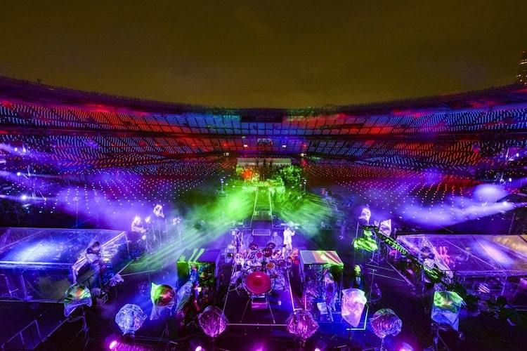 躍動感あふれるサマーチューン「渚の泡沫」では、このライブのために開発された世界初の映像技術soundiv.が取り入れられ、センターステージを取り囲む複数のカメラの映像が高速で切り替わっていく。KO-SHINがリフを鳴らし始まったキラーチューン「いいから」では高速で切り替わる映像に加え、旋回するカメラワークでも視聴者を魅せた。KENTAが「みんな観とるか? またここでゼロ距離で会いたかなあ。俺はここZOZOマリンスタジアムから歌うから、今観とる場所からともに歌ってもらってもよかですか? FUJIくん、KO-SHIN、ともに歌うよ! こんな時代だから、ともに歌うよ!」と熱弁を振るい、3人は代表曲の1つ「ともに」を披露。パワフルな演奏に乗せて前向きなメッセージを発信すると、楽曲の展開に合わせてサイリウムが輝く会場の様子がドローンカメラで捉えられた。