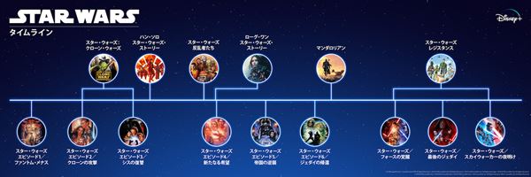 この度公開されたのは、『スター・ウォーズ』全ての物語がディズニープラスに集結した事を記念し、『スター・ウォーズ』の年表がひと目でわかる「STAR WARS タイムライン」ビジュアルと、たった15秒ながらもその圧倒的な魅力を表現した特別映像。