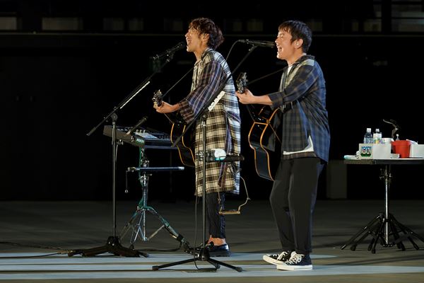 中盤には二人は会場を抜け出し、同じくみなとみらいエリアにある国指定重要文化財・帆船日本丸へ移動。横浜の夜景と遊園地・コスモワールドの観覧車を背景に、『桜木町』『うたエール』を歌唱。 オンラインライブの特性を活かし、ツアー3公演目もゆずらしさ溢れる映像と音楽を画面越しに届けてくれた。
