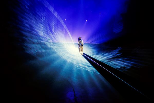 19時の開場時刻を迎え、視聴ページを開いてみると赤い舞台幕を背景に"Love Like Rock「別2」"と書かれた今回のライブロゴが現れた。しばしの時間が経過後、ビックバンドが奏でる高らかなホーンの音とともに始まるaikoのジャジーなナンバー「れんげ畑」が、開場中のSEとして流れてきた。心躍るサウンドに、aikoがこのあと魅せてくれるライブがより楽しみになる演出だ。