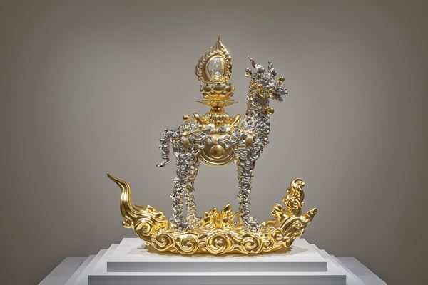 同展は近年、名和が取り組む京都の伝統工芸復興プロジェクトから生まれた作品を中心にした構成。鎌倉時代の「春日神鹿舎利厨子」へのオマージュとして、木彫漆箔仕上げの《Trans-Sacred Deer (g/p_cloud_agyo)》(通称 : 雲鹿)を発表している。