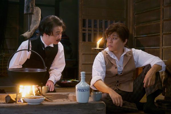 このたび公開された場面写真は8枚。三五代友厚が盟友・坂本龍馬(三浦翔平)と鬼気迫る表情で背中を合わせ戦いに挑む1枚や、岩崎弥太郎(西川貴教)と伊藤博文(森永悠希)が、真剣な様子で話し合っている写真などが切り取られている。