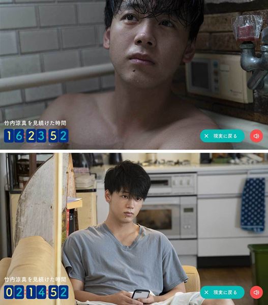 また、どれだけ動画を見続けて、癒やされ続けたかの時間が計測されるようになっており、耐久時間をSNSにシェアすることが可能だ。さらに、再生した時間に応じて、部屋でくつろぐ姿や一緒に食事をしているかのような動画など、特設サイトでしか観ることのできない、竹内の特別メッセージ付き映像を視聴することができる。