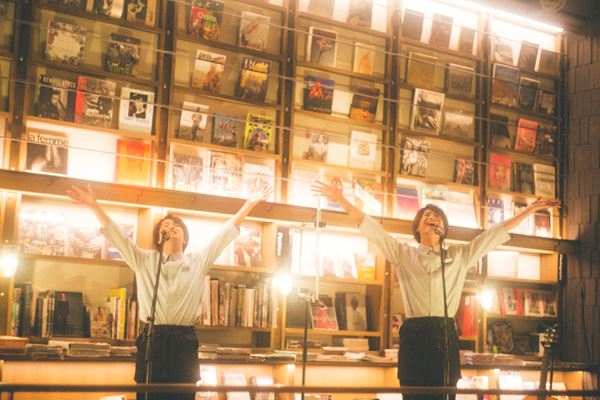 『えそらごと』を披露した後、「あれ?ヤバイ。もうこんな時間?準備しなきゃ」と慌ててステージを降りる雅功。すると、レンタルフロア店員の制服を着たぬいぐるみマスコットを使ってミニコントを展開する。彪我店長が新人の雅功にあいさつをしっかりとトレーニングすると、実際に真っ白の衣装からシブツタの制服に着替えた二人が登場。「みんなも一緒に体をほぐそう」と呼びかけ、『しめじ体操』を思い切り歌って踊り、「いらっしゃいませ!SHIBUYA TSUTAYAへようこそ!」という挨拶でライブを締めくくった。