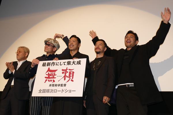 井筒監督にとって『黄金を抱いて翔べ』以来となるメガホン作で「映画って難しい。いつも悩んでいる」。当時20歳だった1973年を振り返り「生き方が定まらず、無職でフラフラしていたあの頃、『仁義なき戦い』を道頓堀の東映で見た」といい、「(上映が)終わったら、深作(欣二)さんが(舞台挨拶に)登場したのね。深作さんが『本日はどうもありがとうございました』って挨拶したら、やんやの喝さいだった」と回想。この光景に、若き日の井筒監督は衝撃を受けたそうで「あの日から、いつかヤクザ映画を撮ってやろうと思った」と本作への強い思い入れを語っていた。舞台挨拶には松本、井筒監督に加えて、共演する木下ほうか、中村達也、阿部亮平が出席した。