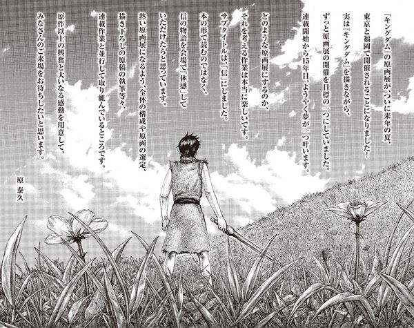 さらに会場では、著者である原泰久氏直筆の原画、展覧会のために描きおろされたイラストなどもちりばめられる。作品が持つ圧倒的な迫力と感動を体感できるだろう。なお、上野の森美術館、福岡市美術館で開催されたのち、日本各地に巡回も予定されている。