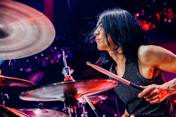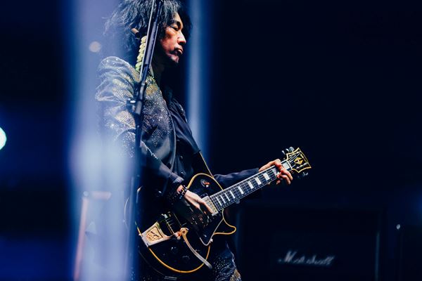 「楽しんでまいりましょう!」という吉井のコールとともに演奏した1曲目は「DANDAN」だった。“集まったぜ 盟友”“どんな夢も叶えるバンドができたよ”とバンドの30周年を自ら祝福するような歌のフレーズが、エマ / ヒーセ / アニー / 鶴谷の繰り出す力強いグラムロックのビート感とともに鳴り渡り、武道館の広大な空間を高揚感で満たしていく。