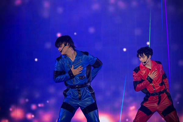 そして扉を開け、ライブ会場へ。スポットライトが当たる彼らの姿に8号車の声援が聞こえてきそうだ。センターステージに上がり、息の合ったキレのあるダンスを見せる。暗転し、響くセクシーなサウンド。『On &On』だ。かぶっていたハットに手を滑らせ、外し、投げるだけの仕草が高揚感を盛り上げていく。