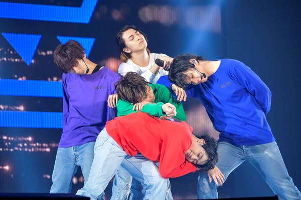 余韻がまだ残るステージでのMCはやはりそれぞれのパフォーマンスについて。リョウガが「本当じゃないですか、クール&セクシー」と言えばユウキも「あれやばかったでしょ!」と応える。カイも「10年目の歴史の中で初めてソロの曲でやって緊張したね」と語った。