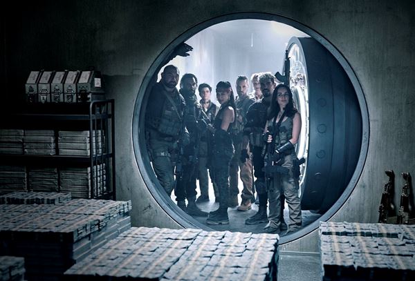 公開された場面写真では、デイヴ演じる傭兵とエラ演じるキャラクターが語り合う雰囲気が伝わる場面や、巨大金庫に眠る莫大な現金を見つけ出した傭兵たちが写る1枚など、スリルに満ちたシーンが切り出されている。さらにメイキング写真では、車中でガイコツと共に、自らカメラを構えるスナイダー監督の姿も。
