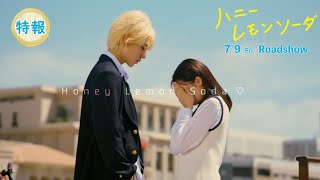 この映像は、界が絡まれた不良たちにレモンソーダをかけようとするが、うっかりそれを羽花が被ってしまう……というふたりの出会いから始まる。羽花を演じる吉川のナレーションとPOPな音楽に乗せて、運命的な出会いにドキドキしたり、友人たちとの交流で笑顔に変わっていく界と羽花の姿。そして、教室での“ないしょポーズ”や“頭ポン”など、胸キュンシーンも盛りだくさん。夏の暑い季節に公開される、界と羽花の甘酸っぱい恋に期待が高まる特報映像だ。