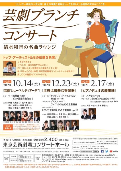 5年目を迎えた芸劇ブランチコンサート、2020年度最後の公演は「ピアノデュオの醍醐味」と題され、若手実力派入江一雄と清水和音のピアノデュオが楽しめる(2月17日:東京芸術劇場)。