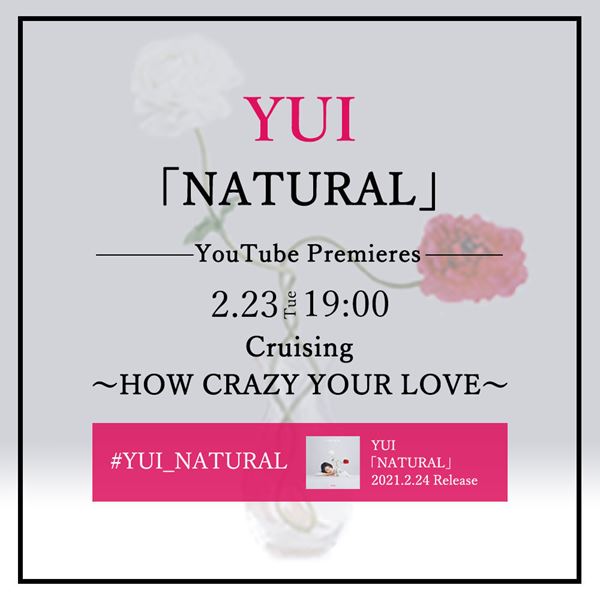 YUIのデビュー15周年とセルフカバーミニアルバム『NATURAL』のリリースを記念して、2012年1月に日本武道館にて行われた「Cruising ~HOW CRAZY YOUR LOVE~」の模様がオフィシャルYouTubeアカウントにて明日2月23日(火)19:00よりプレミア公開されることが決定した。