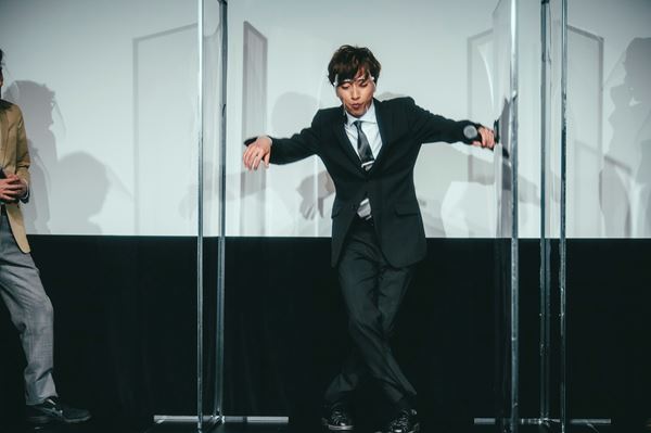 すると塚田が急に、「すいません、途中からすごい気になっていたのですが、あちらにいらっしゃる用務員さんの格好してる方って、もしかしてよゐこ濱口さんじゃないですか?」と言うと、A.B.C-Z主演のスペシャルドラマ『ぼくらのショウタイム』でプロデューサーを務め、本作にもカメオ出演しているよゐこの濱口優が、「バレてしまいましたか!A.B.C-Zが心配で見に来てしまいました!最初から見ていましたよ!」と、まさかのサプライズで登場。濱口は早速、「河合くんがモノマネでブレイクしているからめっちゃ忙しいんじゃない?今日モノマネ全然やってくれないじゃん!」とのフリから、河合は嵐の二宮和也の“猫背で踊るモノマネ”を披露し、「第一子、おめでとうございます!」と会場を沸かせた。