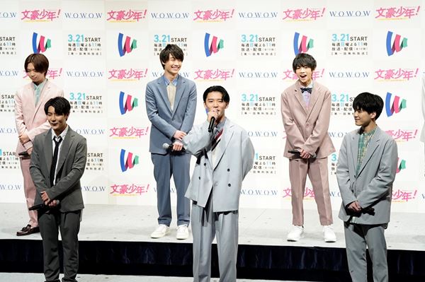 ジャニーズJr.内のユニット・少年忍者の12名が主演を務める『WOWOWオリジナルドラマ 文豪少年!~ジャニーズJr.で名作を読み解いた~』のクランクアップ会見が3月13日、都内で行われ、出演するメンバーのヴァサイェガ渉、川崎皇輝、北川拓実、織山尚大、黒田光輝、元木湧、安嶋秀生、内村颯太、深田竜生、檜山光成、小田将聖、田村海琉、豊田陸人、平塚翔馬、青木滉平が顔をそろえた。