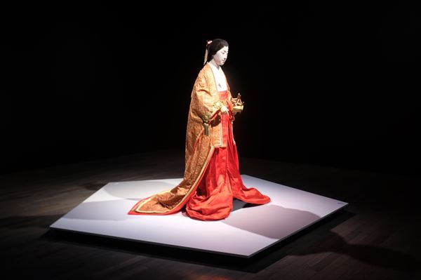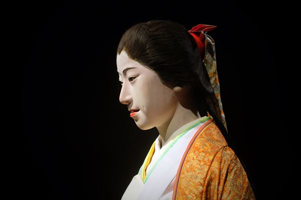 展示会場冒頭で展示されているのは生人形(いきにんぎょう)。幕末から明治期にかけて、主に見世物小屋のコンテンツの一つとして制作されていたリアリティあふれる人形だ。展示されている安本亀八の《白滝姫》も、憂いのある表情が人々をひきつけている。このほか、1章の「プロローグ 激動の時代を生き抜くためのパワーをもとめて」では、幕末〜明治時代に描かれた「無残絵」なども展示されている。