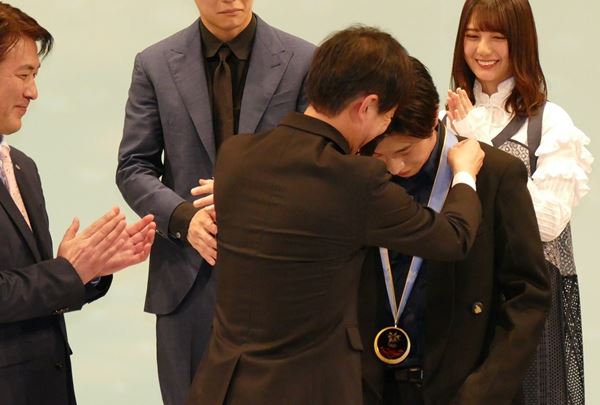 イベントには物語のモデルとなった元日本代表選手の西方仁也氏、長野五輪金メダリストの原田雅彦氏が駆けつけ、原田氏から田中に金メダルが“授与”される場面も。このサプライズに、田中は「グッときちゃいました」と思いが詰まった金メダルの重みに感激しきりだった。