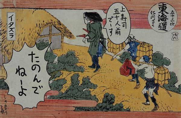 前回発表した葛飾北斎≪冨嶽三十六景≫のパロディ作品≪ちょっと可笑しなほぼ三十六景≫に、新作≪青富士≫≪瑠璃富士≫を加え、さらに原案となった同館所蔵の北斎作品など約160点を展示。≪東海道五十三次≫≪諸国瀧廻り≫などの浮世絵から『椿説弓張月』などの版本まで、世界に名だたる北斎の画業の幅広さも紹介しつつ、しりあがり流に解釈した北斎ワールドが展開される。