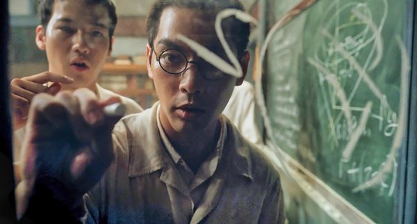 そしてこの度、本作の場面写真9点が一挙公開された。戦争が終わった先にある人生を考えている世津に背中を押され、「いっぱい未来の話、しよう」と3人で手を取り合うカットが感じさせるのは、戦下の中前向きに生きる彼らの強い決意と絆。また、原子核爆弾の開発という極秘任務に携わる科学者・修が、一科学者として目の前の研究に没頭し、黒板をはみ出してガラス戸にまで数式を書き連ねる姿は、“実験バカ”と周りから言われている彼の個性を垣間見ることができる。他にも、教授を囲み実験に臨んでいる研究室の様子、戦地から戻ってきた笑顔の裕之、海辺で修と裕之を抱きしめる世津の姿、戦地へと向かう息子の頬に優しく触れる母・フミの切ない表情など。時代に翻弄されながらも毎日を生きている修たちの、様々な表情と揺れ動く気持ちに迫った場面写真となっている。