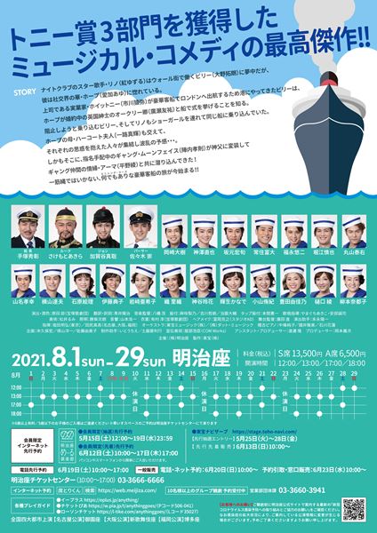 すべて見る明治座にて2021年8月に上演されるブロードウェイ・ミュージカル『エニシング・ゴーズ』のメインビジュアルが公開された。