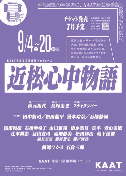 現代演劇の金字塔にKAAT神奈川芸術劇新芸術監督・長塚圭史が挑む。彼が2021年メインシーズンの演出第1弾に選んだのは『近松心中物語』。