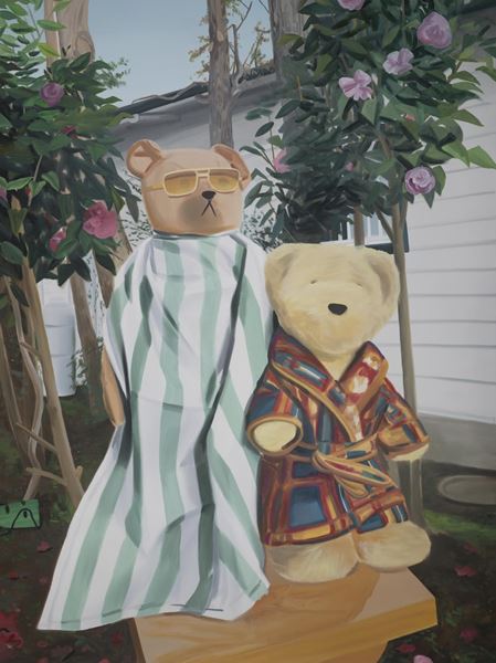 新しい画集『MELODY』(PARCO出版)の完成を記念して、PARCO MUSEUM TOKYOで約30点の新作を発表いたします。最近、大作を手掛けるようになりました。昨年描いた、バナナの上に寝そべるクマの小作品を機に、等身大のモチーフを大きく引き伸ばして描いてみたいと思うようになったのです。