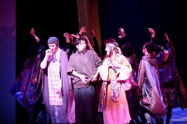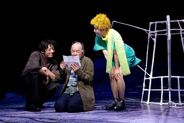 半人前のアタイを叱り飛ばす先輩イタコ、“オタコ姐さん”役の村岡希美は持ち前の艶やかな声と小気味良さで、神の使いと称して現れる“アブラハム”役の川平慈英と“三日坊主”役の伊原剛志はどちらもボケ担当の漫才コンビのような愉快な掛け合いを見せて、野田が仕掛ける異空間を快走し、軽妙なリズムを巧みに刻んでいく。稽古に入る前のぴあアプリ取材でNODA・MAP初参加を心から喜んでいた前田敦子は、アタイの母親らしき“伝説のイタコ”と“星の王子様”、そしてある重要な出来事の象徴となる“白い烏”の三役を担い、全力の声の張りも清々しく、猛進の演技で視線を集めていた。