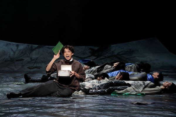 時に整然、時に多様なアンサンブルの俊敏な動きが想像の空間を膨らませ、テンポよく繰り出されるキャラクターたちの言葉が頬を緩ませる。ただ、笑いを誘うその勢いの中で、高橋一生の深く、明瞭に響く独白から、その手に持つ怪しげな匣から、橋爪功の朴訥なつぶやきから、震撼の記憶を呼び覚ます言葉が漏れていく。そのことに気づき、ゆっくりと記憶の焦点が定まっていって“ある出来事”にたどり着いた時、あっ、と合点した。いくつかの引っかかっていた言葉も、冒頭でアンサンブルが魅せた、樹々が倒れる美しいムーブメントのその意味も。